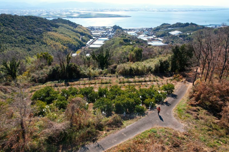江戸から明治に建てられた白壁土蔵の 町並みが残る松合地区。集落が密集し、 迷路のような小道を歩きます。みかん 畑から不知火海や松合の町並みを一望 できるコースです。